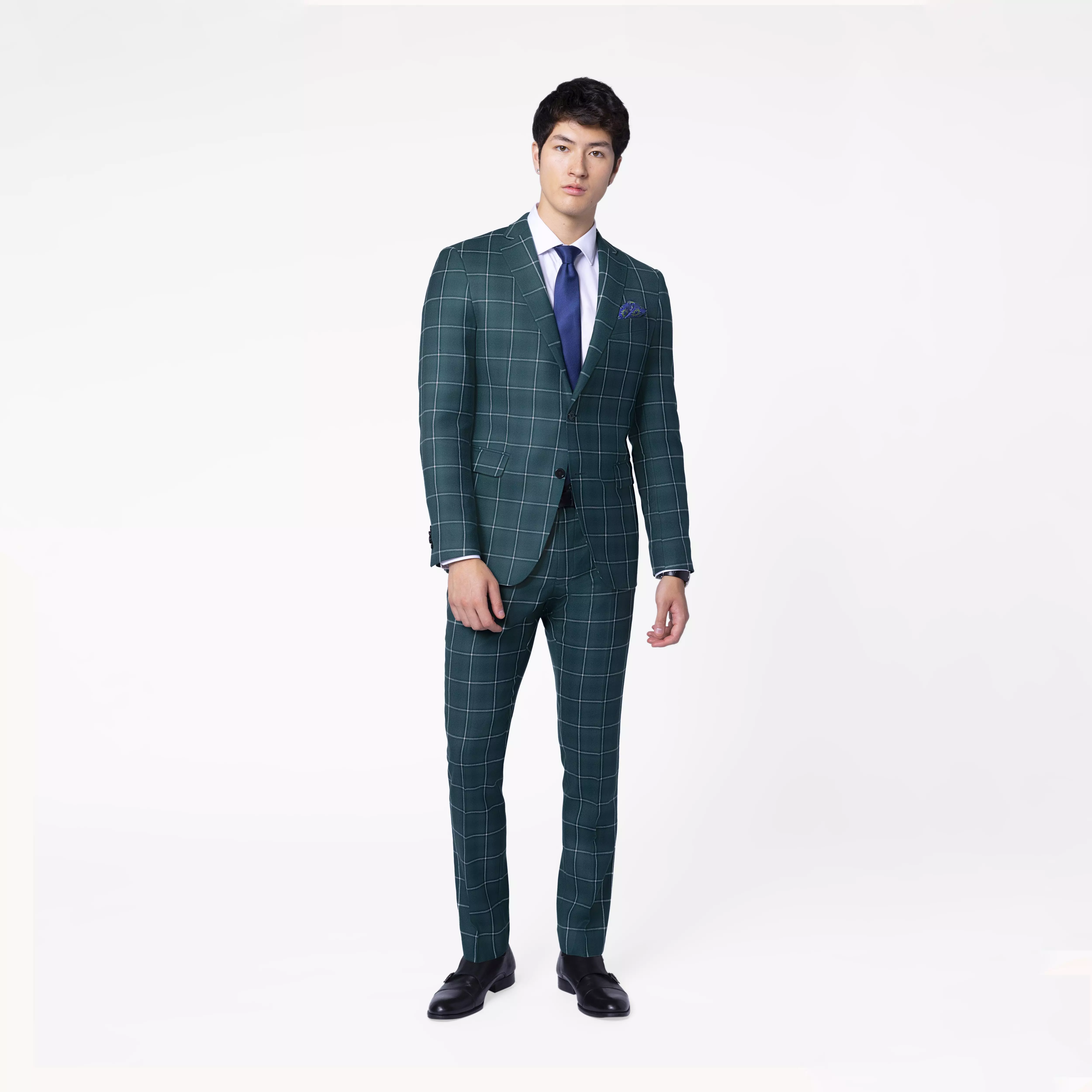 A windowpane blazer is an ol' reliable, loved by nearly everyone. This season we've updated your favorite classic with a rich jewel tone. The dark green adds a touch of luxury while thin ivory lines make it fresh and modern. In addition to being custom made to your unique measurements and specifications, Indochino blazers are built with top quality components and thoughtful construction. All our blazer jackets are half canvassed for greater versatility and superior shape for your body. Each jacket also features fully canvassed lapels, bullhorn buttons, lightweight shoulder pads and high quality collar felts.