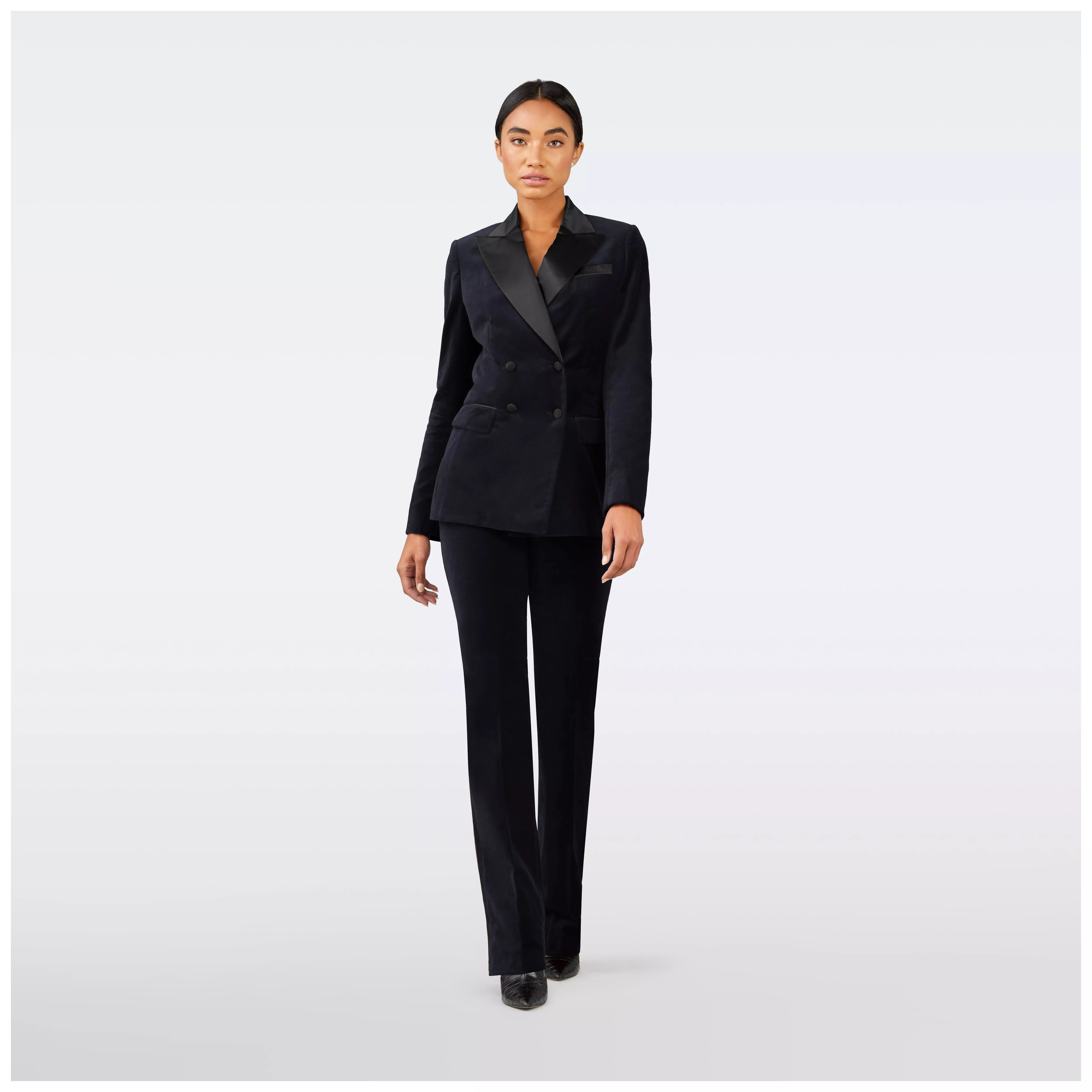 Sure to be a mainstay in your wardrobe for years to come, this sartorial staple is one smart investment. In a dark shade of blue that almost appears black, the Hampton Midnight Tuxedo is made from luxurious cashmere and Super 140s wool, and beautifully structured for a clean drape and sleek silhouette. Satin trim provides stylish contrast, subtly highlighting the buttons, lapels, and pockets.
