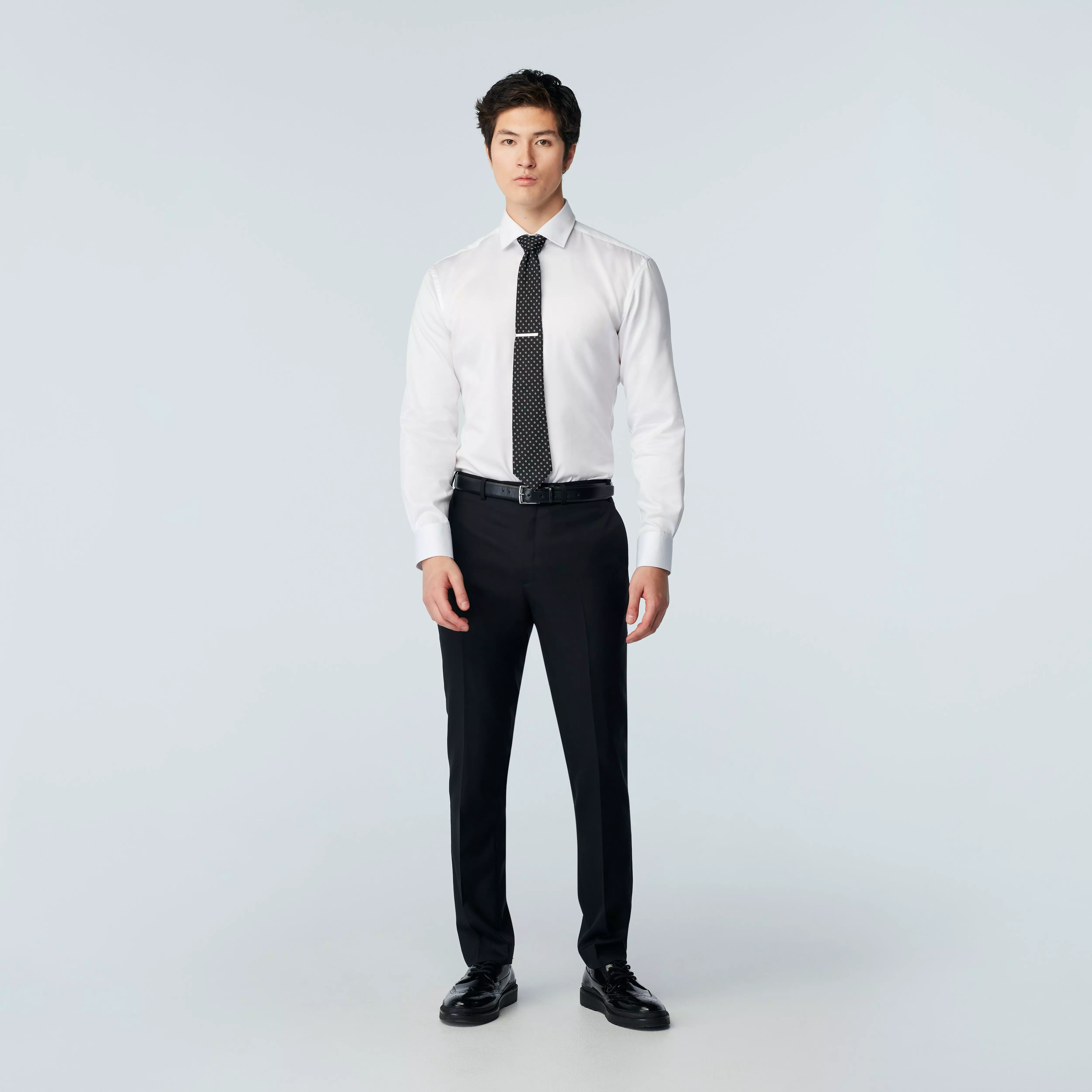You're in the lap of luxury now. We've taken our most popular solid-colored wool fabric and blended it with cashmere to heighten its sophistication. Cashmere is king, gentlemen. In addition to being custom made to your unique measurements and specifications, these pants are thoughtfully constructed from high quality components. All our pants are half lined for added comfort, and feature bullhorn buttons, 4 pockets, and hook & bar closures.