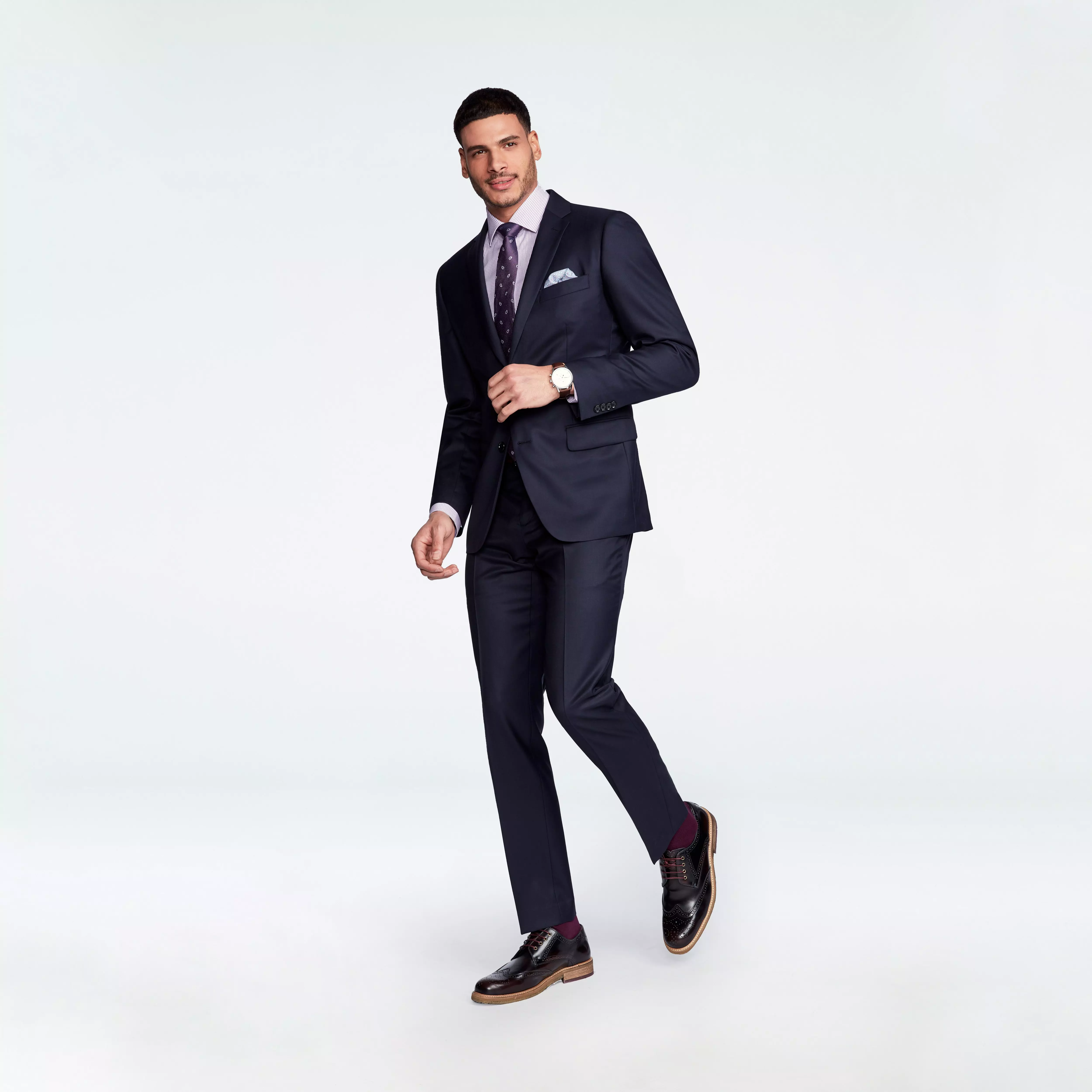 Choose your preferred style, pick fabrics, and personalize details like lapels, buttons, lining and more.