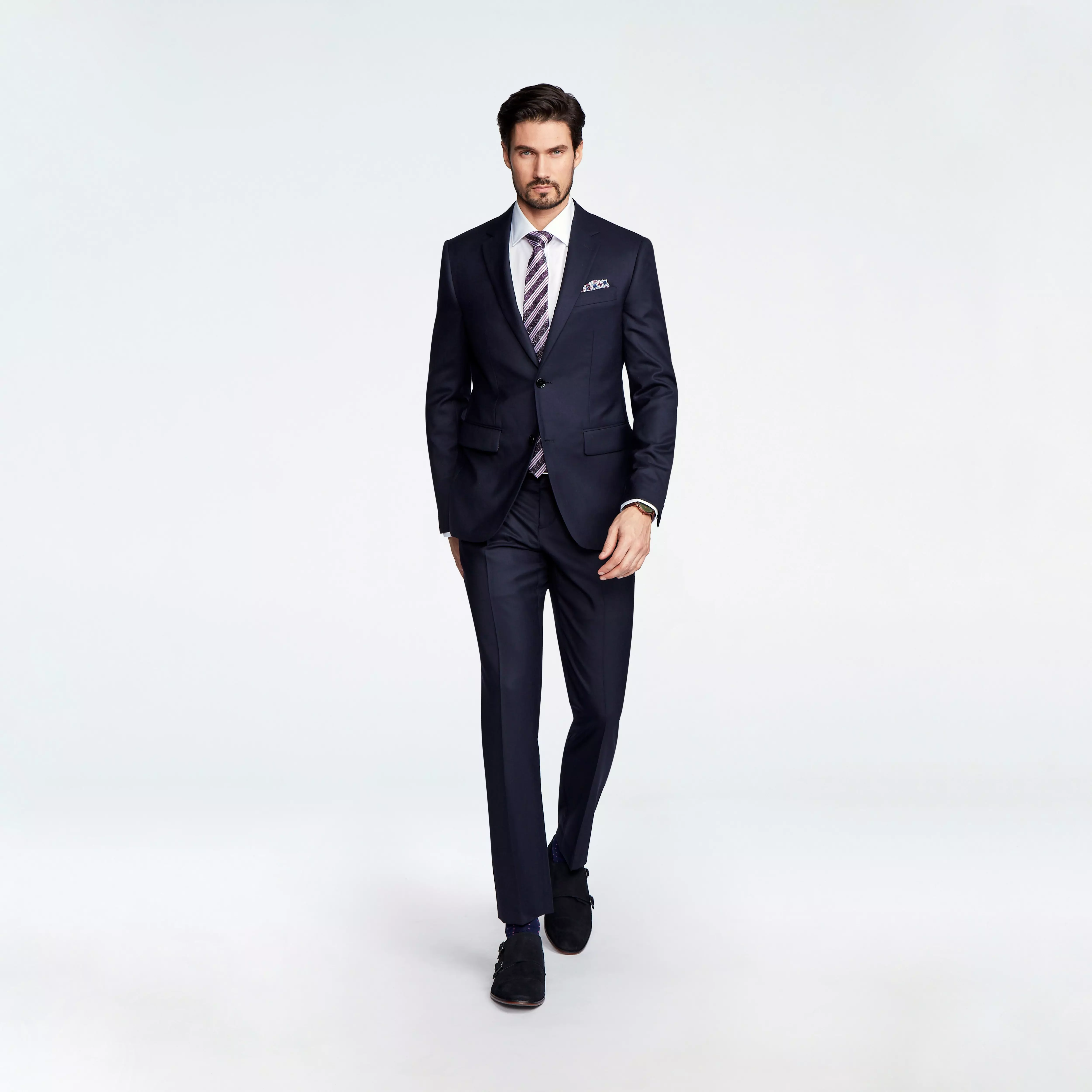 You're in the lap of luxury now. We've taken our most popular solid-colored wool navy suit and blended it with cashmere to heighten its sophistication.