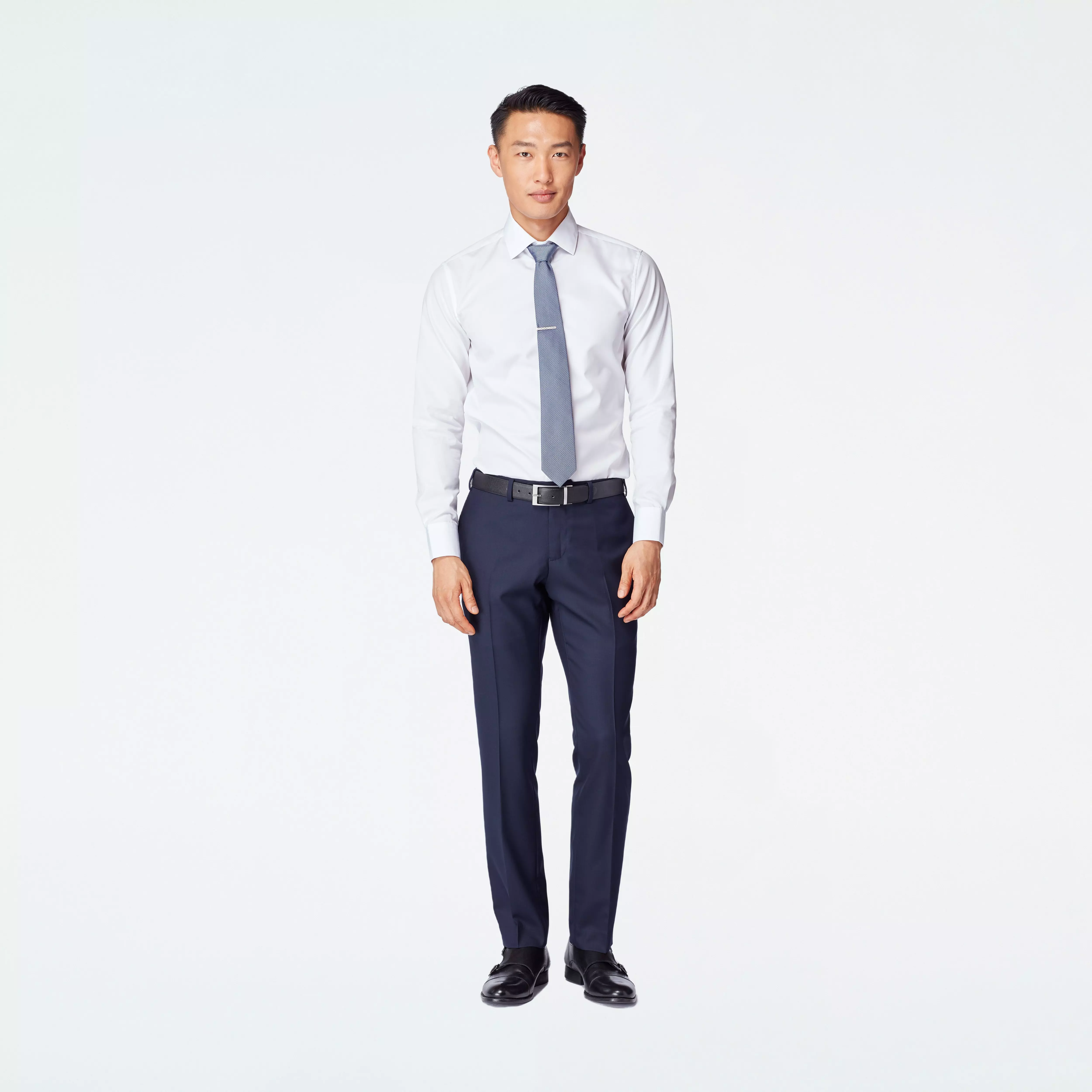 The Indochino Studio Collection is curated just for you. Featuring timeless colors in durable, super 80 Wool Blend, the Studio suit makes style easy and versatile with a single breast, two buttons, and a sleek notch lapel. In addition to being custom made to your unique measurements and specifications, these pants are thoughtfully constructed from high quality components. All our pants are half lined for added comfort, and feature bullhorn buttons, 4 pockets, and hook & bar closures.