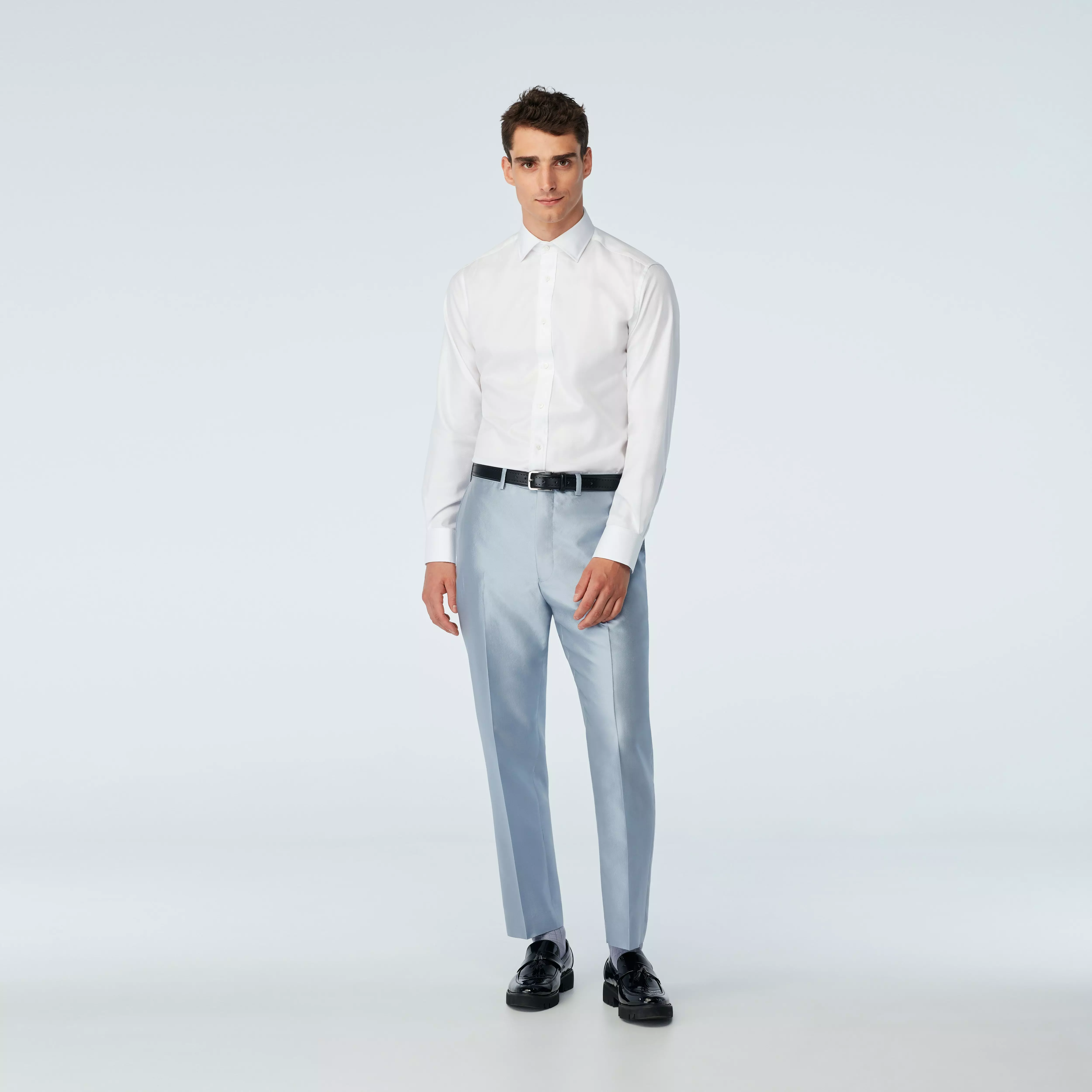 Our Hythe wool is a reliable and sophisticated fabric that holds up to the daily hustle and the after-5 bustle. With the added elegance of silk, you can trust the Hythe to seat you in the lap of luxury. In addition to being custom made to your unique measurements and specifications, these pants are thoughtfully constructed from high quality components. All our pants are half lined for added comfort, and feature bullhorn buttons, 4 pockets, and hook & bar closures.