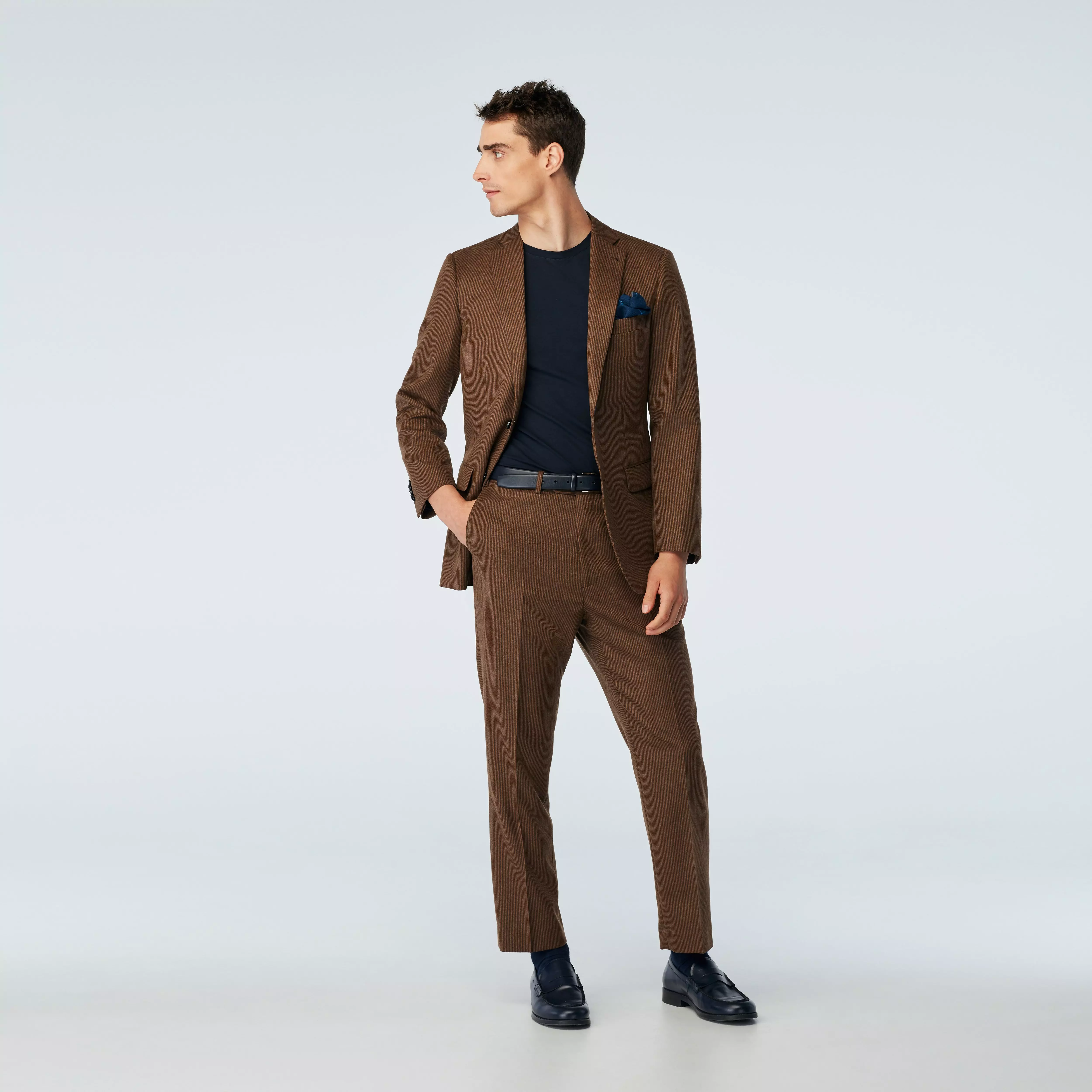 A straightforward suit with a rich wool composition and brown color. The Jevington Melange is sure to be your new neutral.