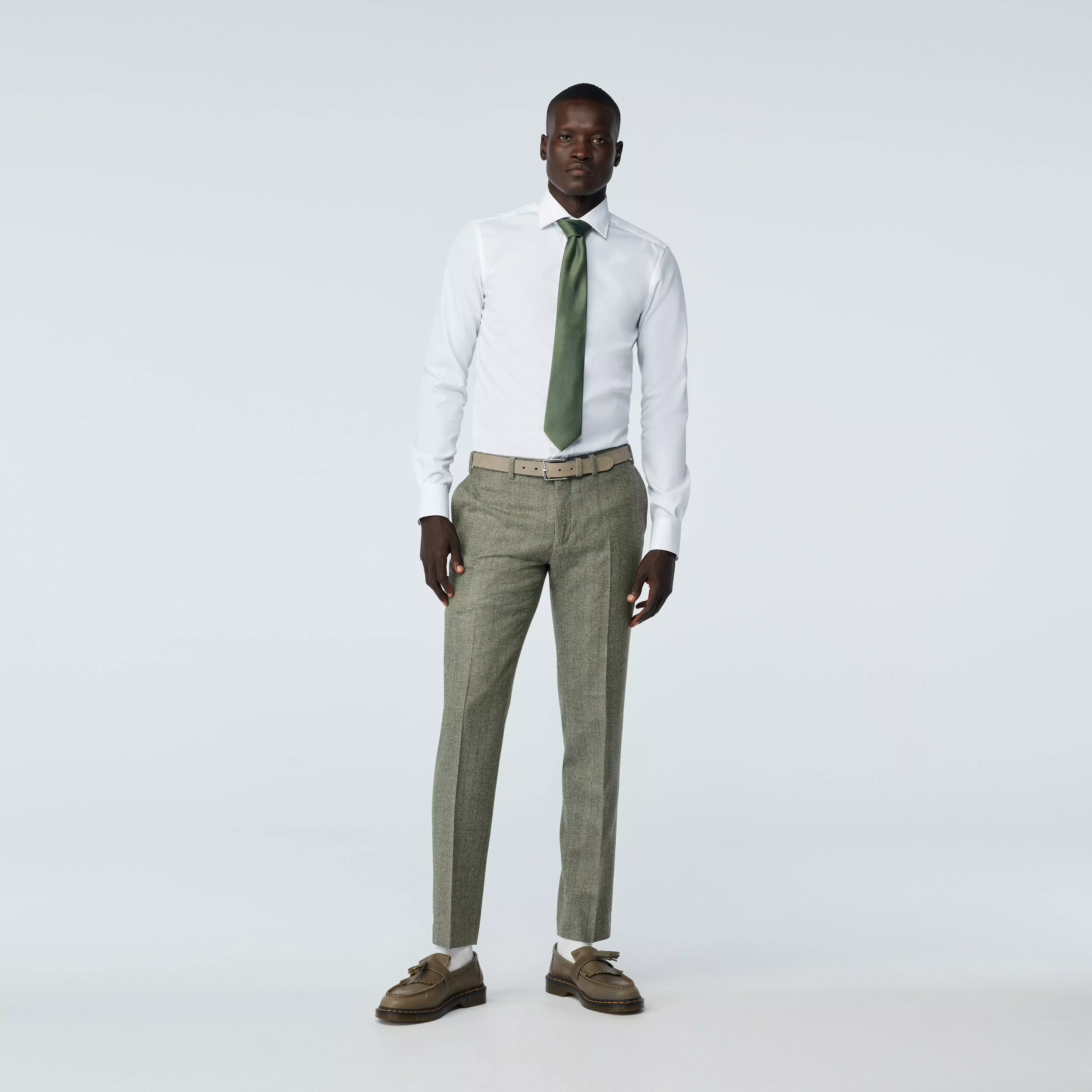 Our Jubilee collection features the Herringbone design you know and love in a 100% wool fabrication. In a variety of dark hues from classic gray to rich hunter green, the Jubilee was made for fall. In addition to being custom made to your unique measurements and specifications, these pants are thoughtfully constructed from high quality components. All our pants are half lined for added comfort, and feature bullhorn buttons, 4 pockets, and hook & bar closures.