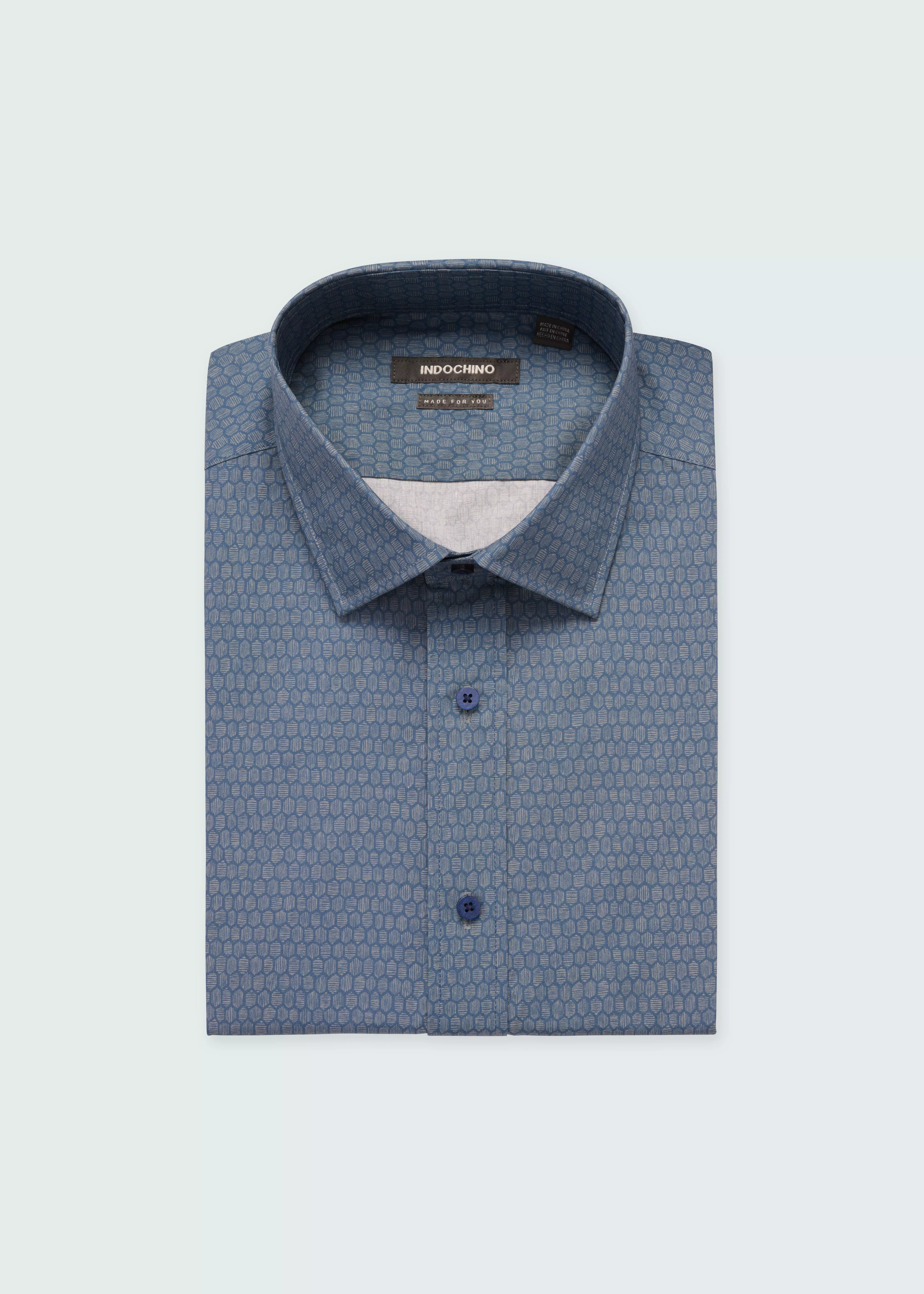 For a look that's as sharp as it is sweet, Liberty Fabrics' honeycomb print oozes personality and style. Easy to care for and easy to wear, Indochino shirts can be customized for casual or formal occasions alike-with options like long or short sleeves, tucked or untucked torso length, and soft or fused collars and cuffs.