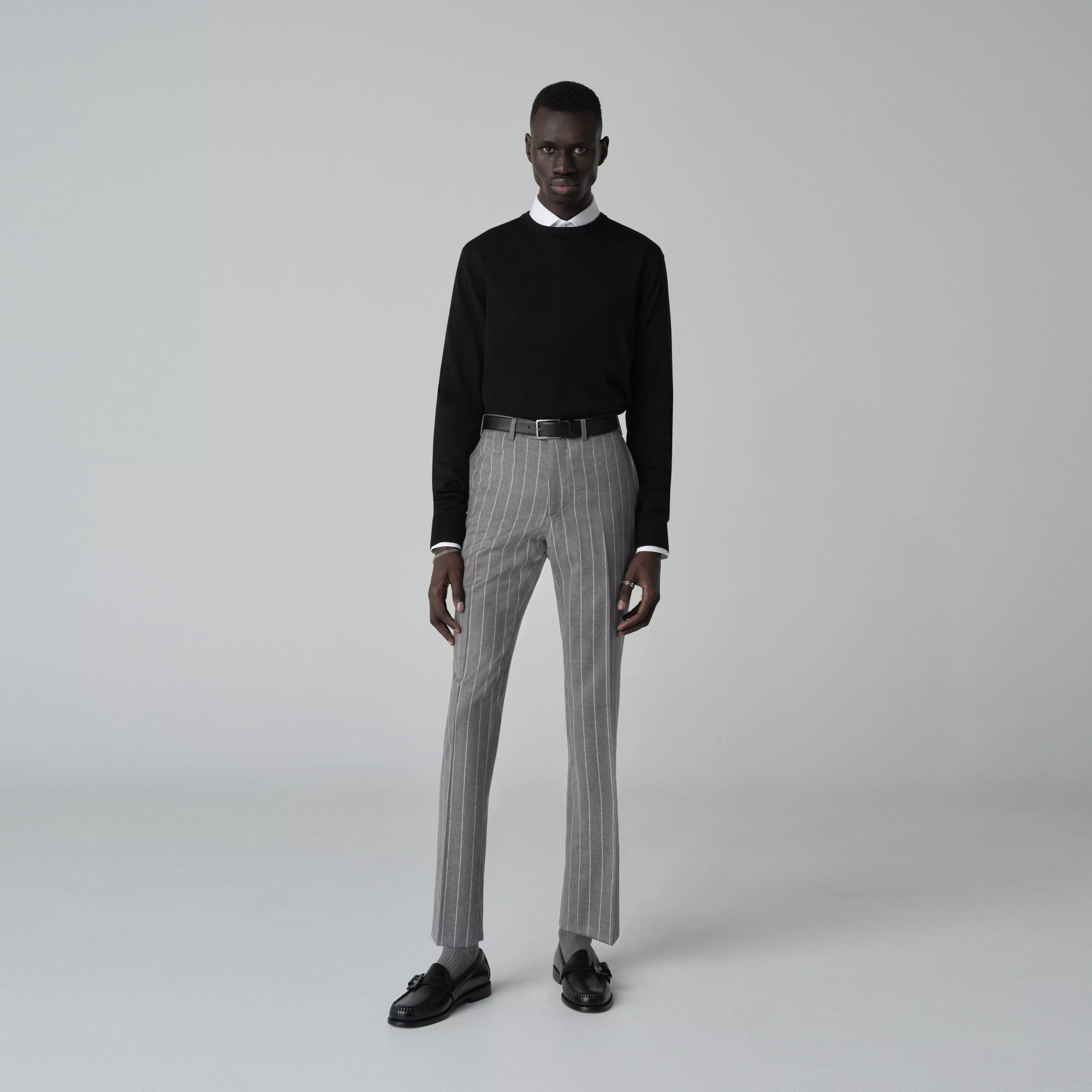 Tap into a striped fabric made of 100% Italian wool and a weight so optimal you can wear it from fall to spring. Our Matera stripe fabric is a sleek style you'll want to take from day to night and weekday to weekend. In addition to being custom made to your unique measurements and specifications, these pants are thoughtfully constructed from high quality components. All our pants are half lined for added comfort, and feature bullhorn buttons, 4 pockets, and hook & bar closures.