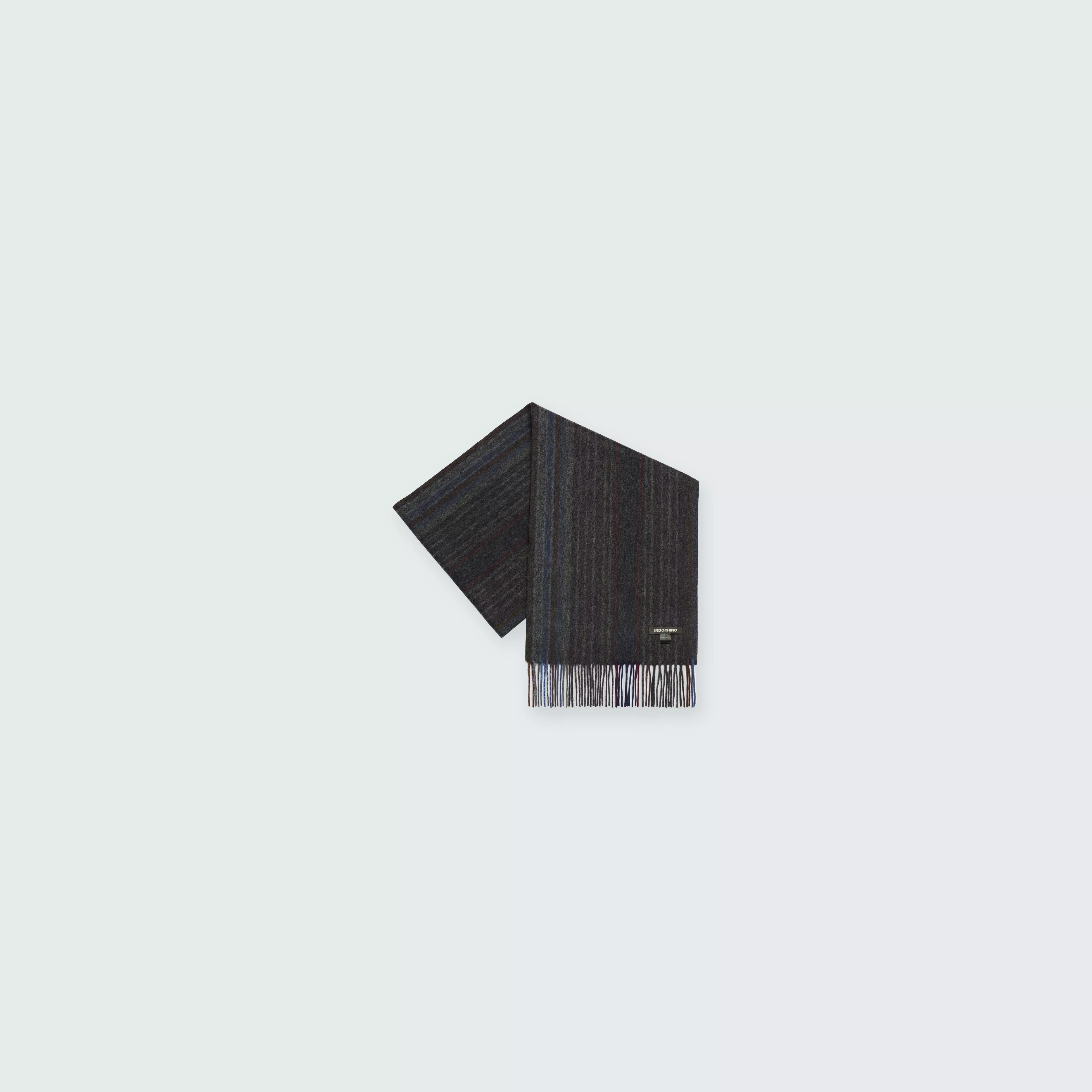 Crafted from pure cashmere and featuring a multi-charcoal striped design, this Indochino scarf is designed for maximum comfort, heat retention-and style.
