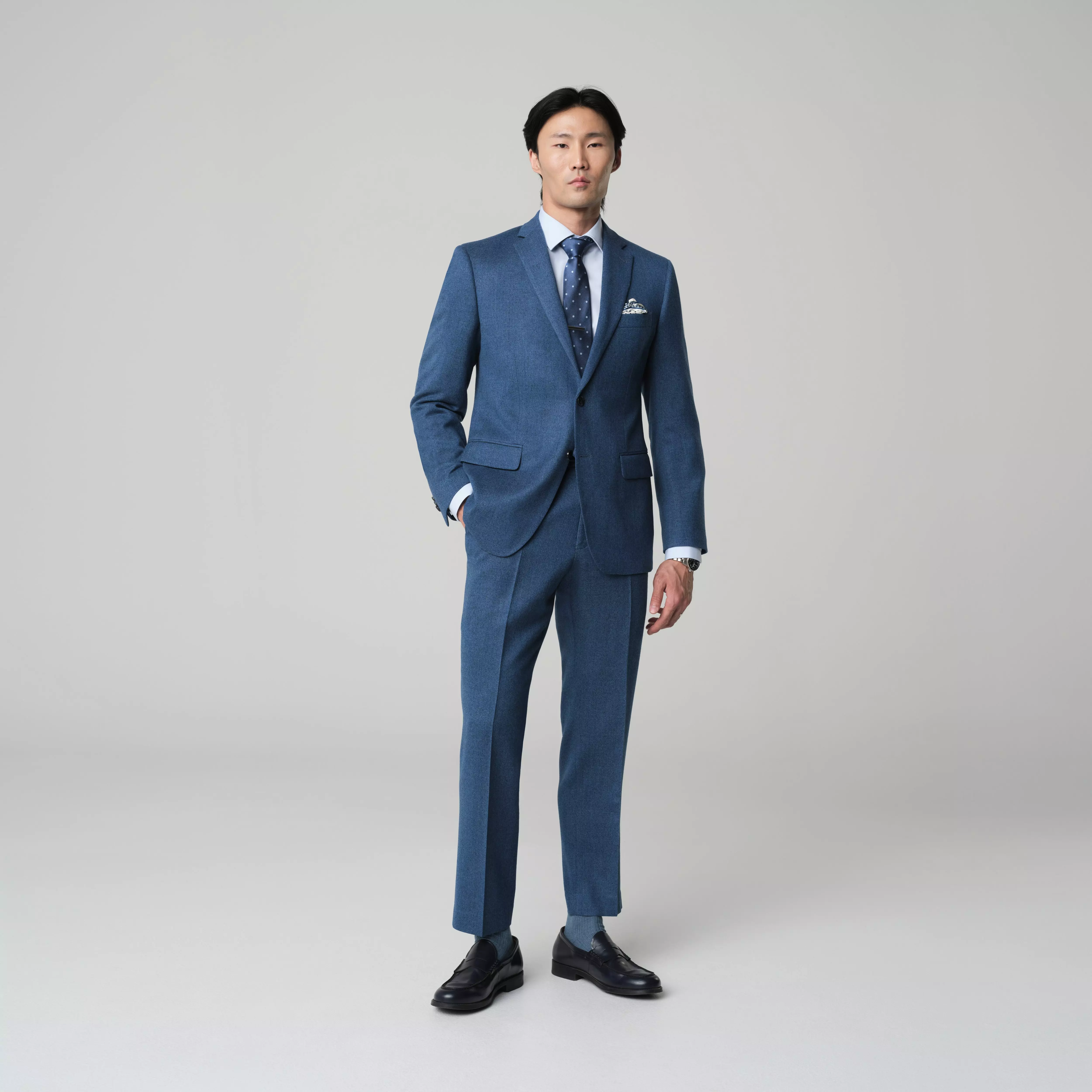 Choose your preferred style, pick fabrics, and personalize details like lapels, buttons, lining and more.