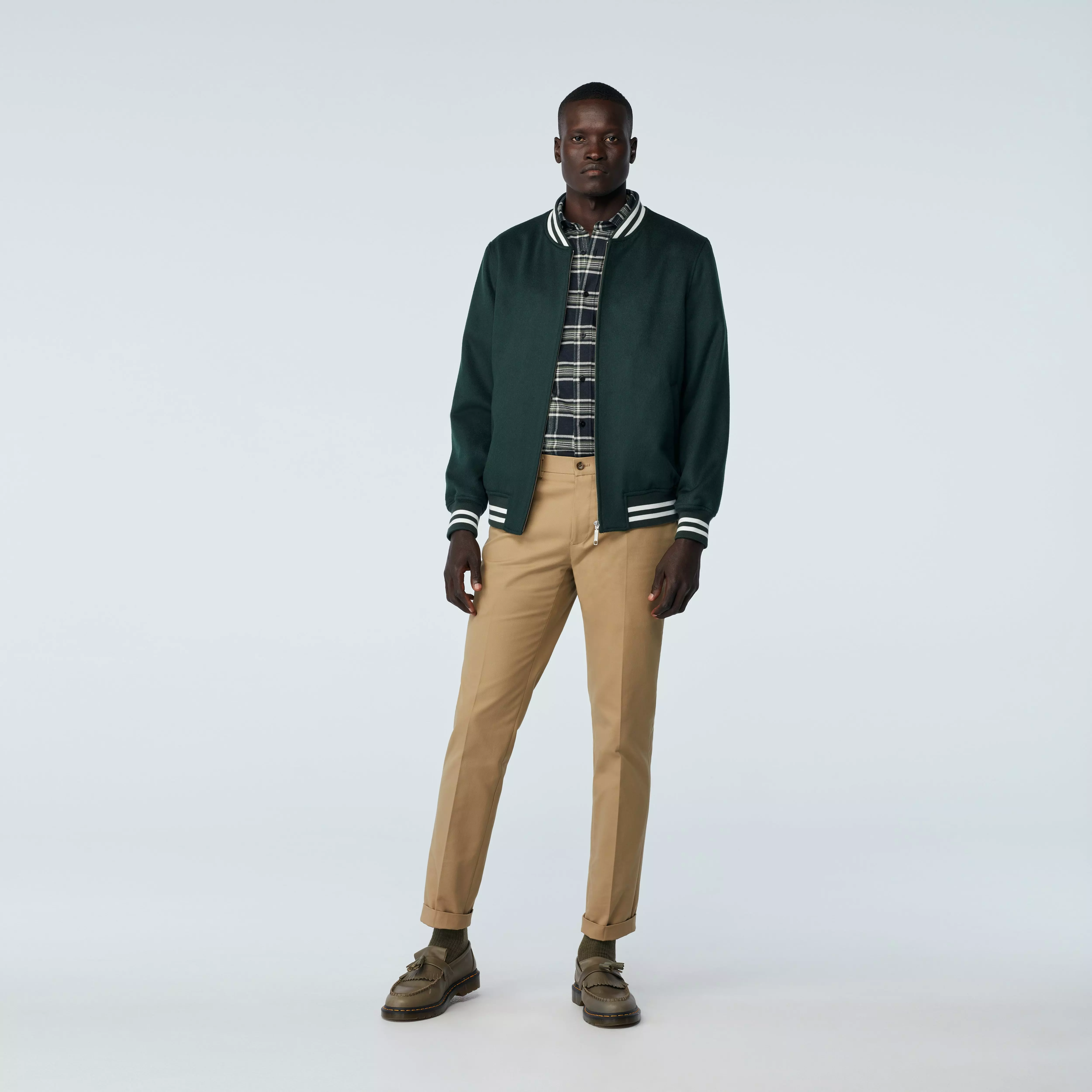 Streetwear meets luxury with our Varsity Bomber collection. Its gorgeous wool shell is blended with cashmere for an elevated feel and look. Every MVP of style needs a varsity jacket. Show off your fashionable chops with a minimalistic bomber jacket.