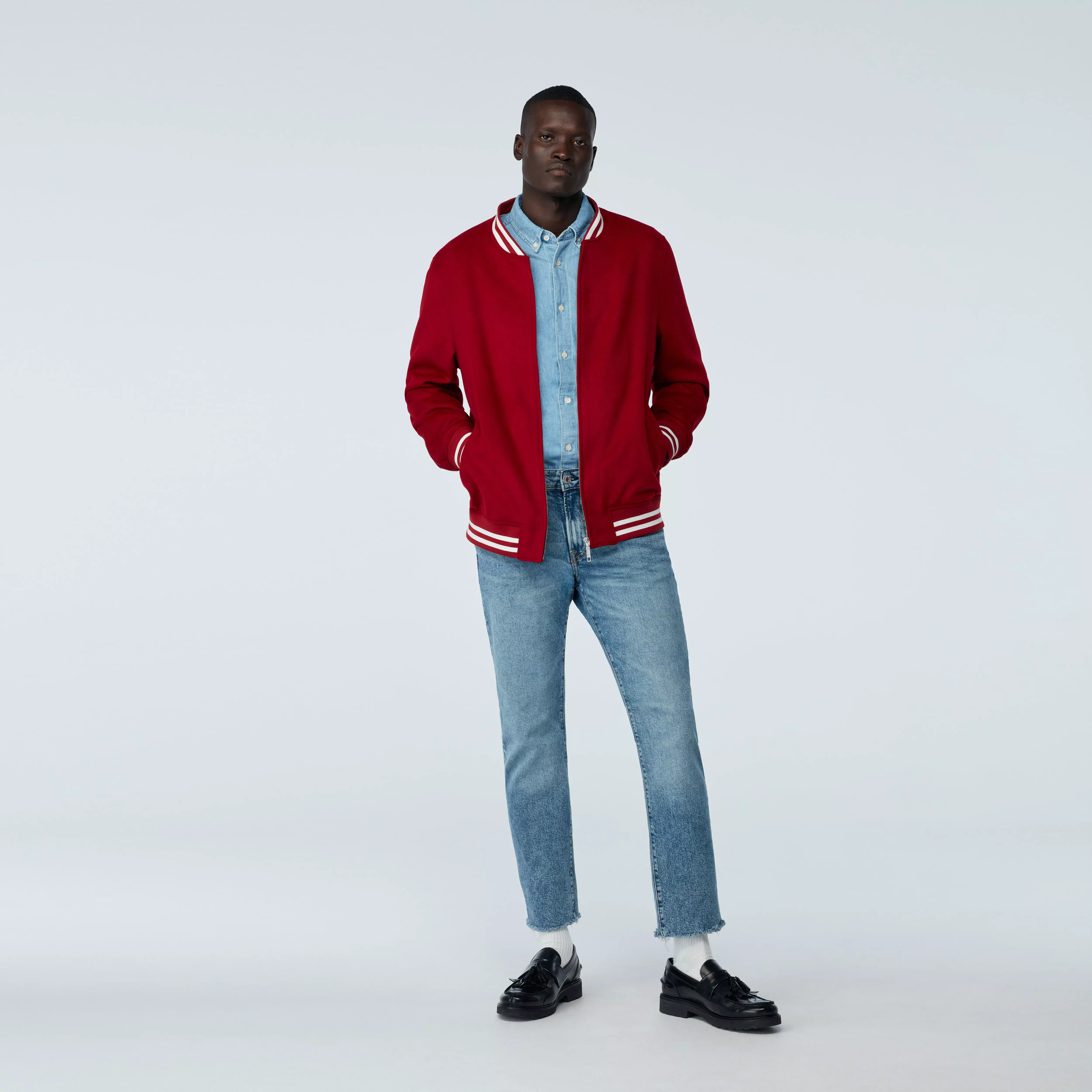 Streetwear meets luxury with our Varsity Bomber collection. Its gorgeous wool shell is blended with cashmere for an elevated feel and look.